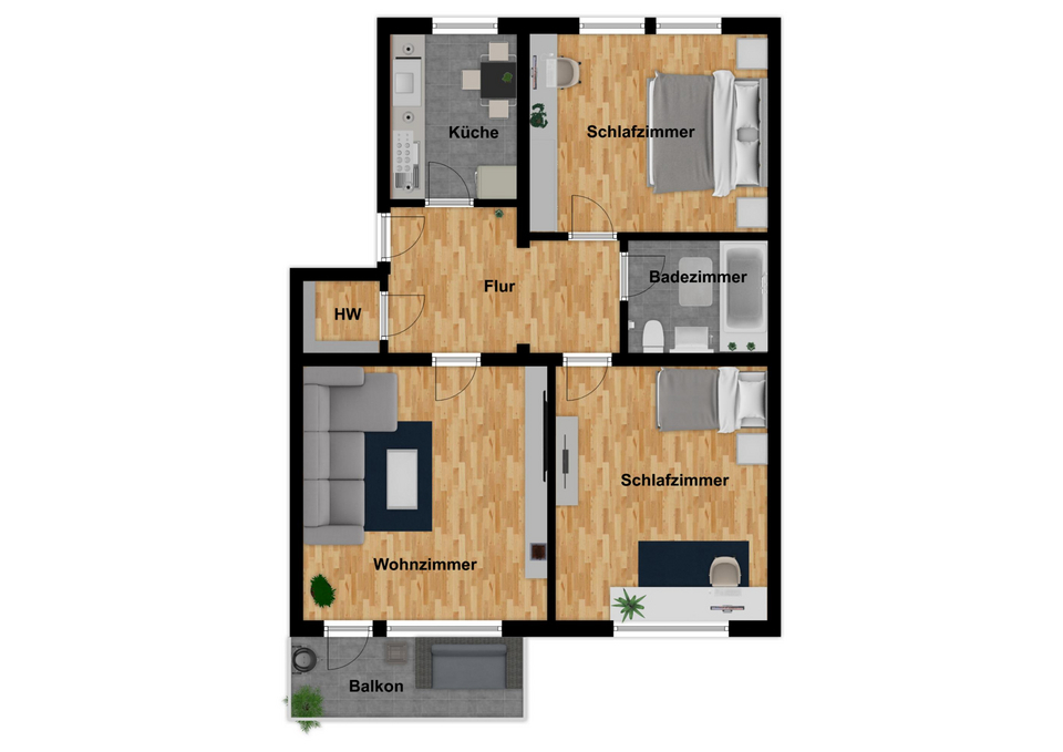 Die Küche ist mit hochwertigen Markengeräten und Armaturen ausgestattet, ebenso das Badezimmer. Die Schlafräume sind groß und gut geschnitten. Der Balkon ist über das Wohnzimmer begehbar, liegt in Süd-West Ausrichtung und bietet viel Platz zum entspannen, sonnenbaden oder grillen.