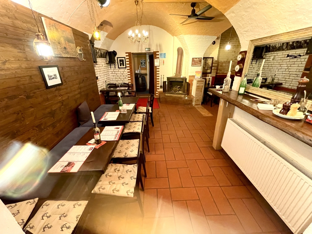 Dieses vielseitige Gastgewerbeobjekt bietet Gastronomen eine ansprechende Kulisse, die sowohl funktional als auch ästhetisch überzeugt. Der zentrale Gastraum besticht durch eine harmonische Kombination aus Holzvertäfelung und freiliegenden Backsteinwänden, was eine warme und einladende Atmosphäre schafft. Die dezent eingesetzten Lichtquellen und der offene Kamin tragen zu einem heimeligen Ambiente bei.Der Barbereich ist kompakt und effizient gestaltet, sodass ein reibungsloser Betriebsablauf gewährleistet ist. Die verwendeten Materialien sind robust und pflegeleicht, ideal für den intensiven täglichen Gebrauch im Gastgewerbe.