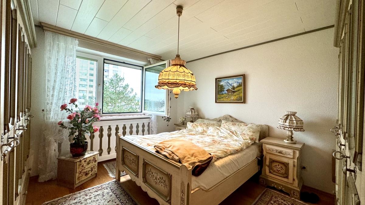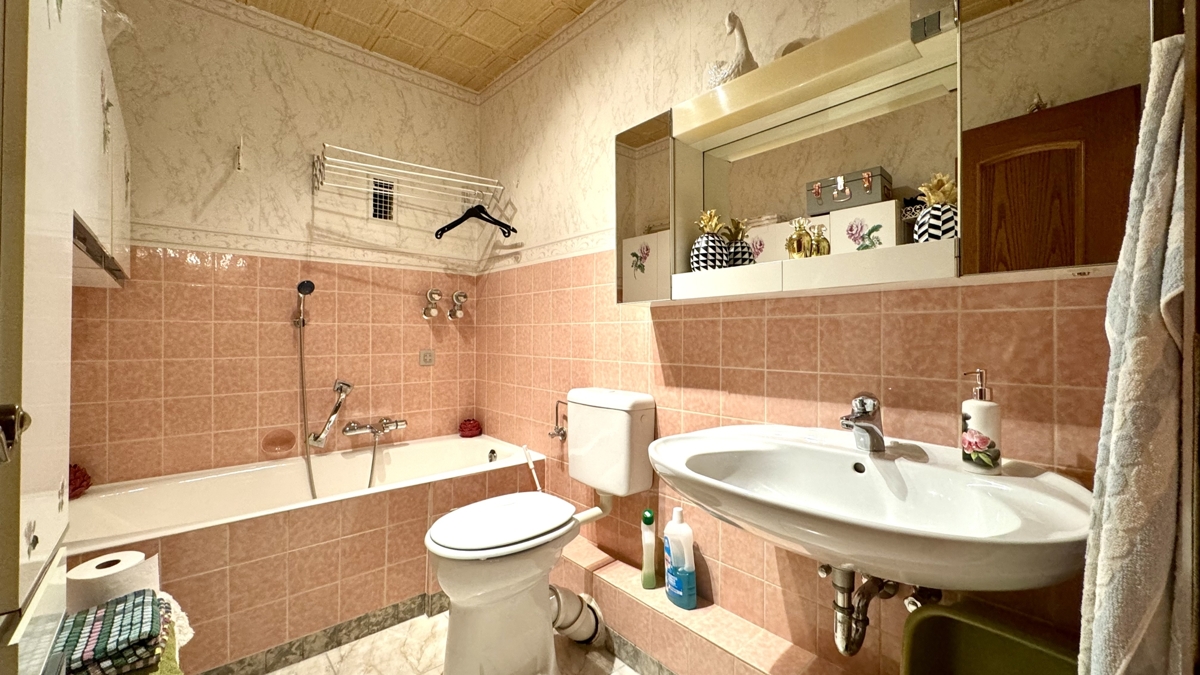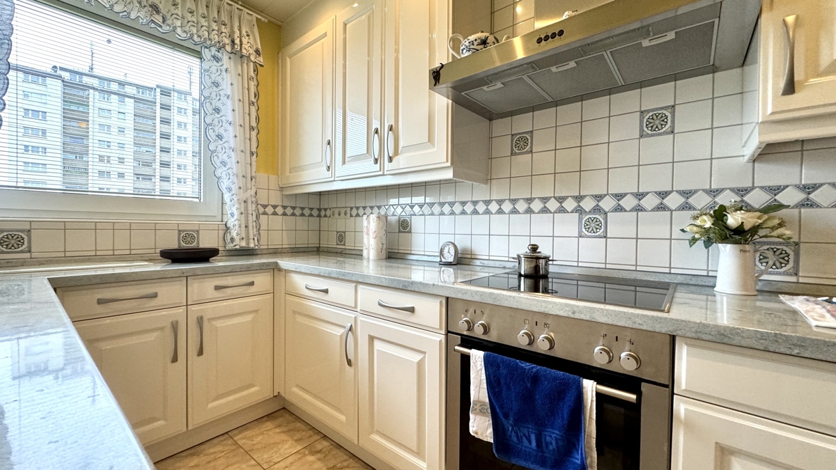 Im Inneren präsentiert sich die Immobilie in einem zeitlosen Stil. Vom Flur aus gelangt man in die Küche, zwei Schlafzimmer, das Badezimmer und das Wohnzimmer. Außerdem verfügt die Wohnung über einen sonnigen Balkon.