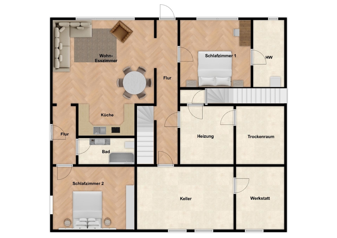 - Zwei Kellerräume plus separater Heizungskeller