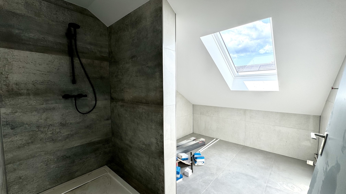 Im hochwertig ausgebauten Dachgeschoss erwartet Sie ein vollwertiges Studio-Apartment – ideal als Gästebereich, Teenagerwohnung oder Elternbereich. Es verfügt über ein Tageslicht-Duschbad, eine eigene Küche, ein großzügiges Wohnzimmer mit separatem Schlafzimmer sowie eine charmante Hochebene als Galerie oder Schlafbereich.