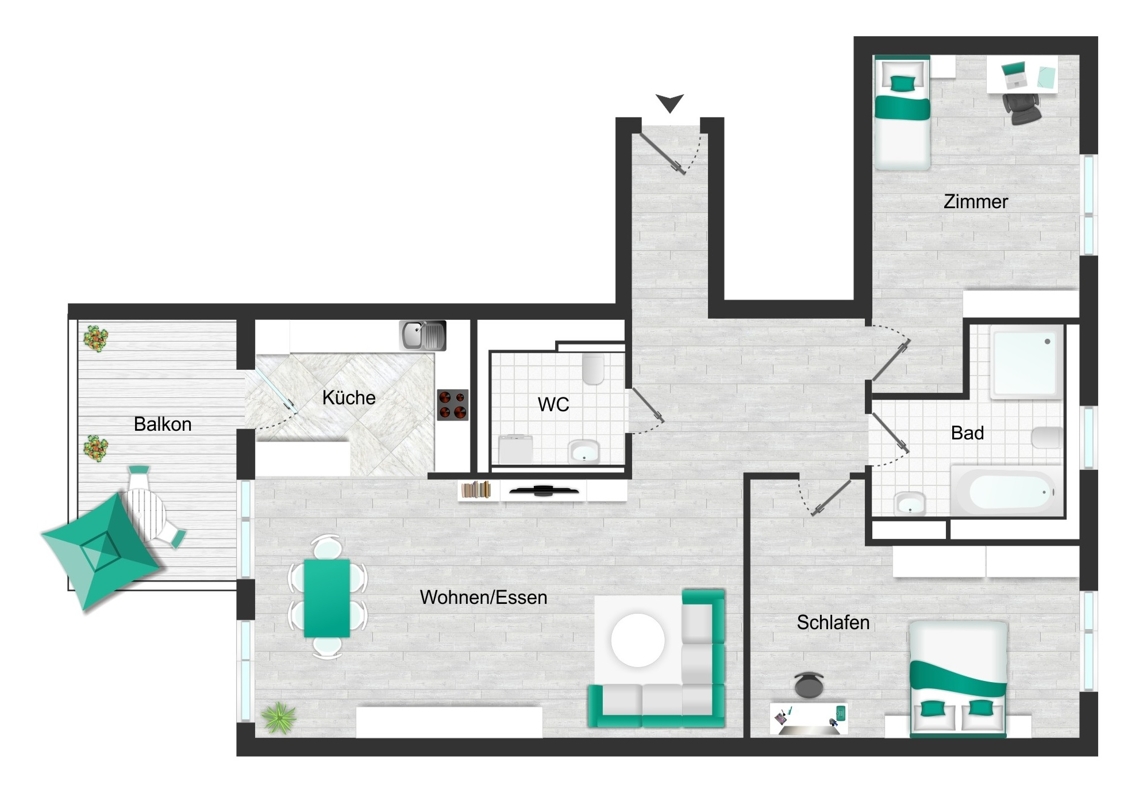 - Lichtdurchfluteter Wohn-/Essbereich mit Zugang zum großzügigen West-Balkon – perfekte Ausrichtung für sonnige Nachmittage und entspannte Abende